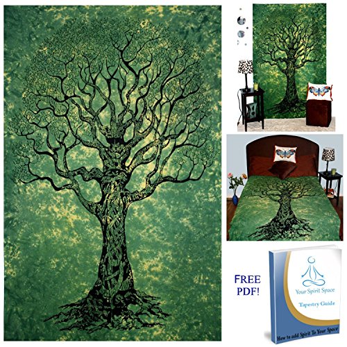 YOUR SPIRIT SPACE (TM) GREEN TREE OF LIFE TAPESTRY-GOOD LUCK. QUALITY FOR HOME OR DORMS PSYCHEDELIC HIPPIE ISLAMIC ASIAN CONTEMPORARY CANVAS WALL HANGING ART. THE ULTIMATE BOHEMIAN TAPESTRY DECOR.