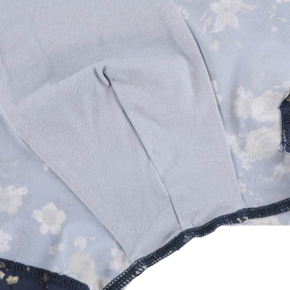 페일블루컬러의 섬세한 플라워 나염이 로맨틱하면서 멋스러운 드로즈 제품.