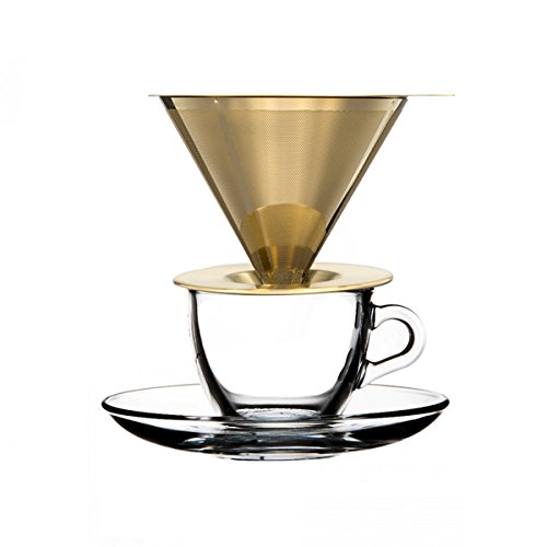 Made of high-end 18/8(304) stainless steel food grade, this reusable coffee filter with surface processed with titanium finish, more durable, and allows you everlasting enjoyment towards dainty brew.