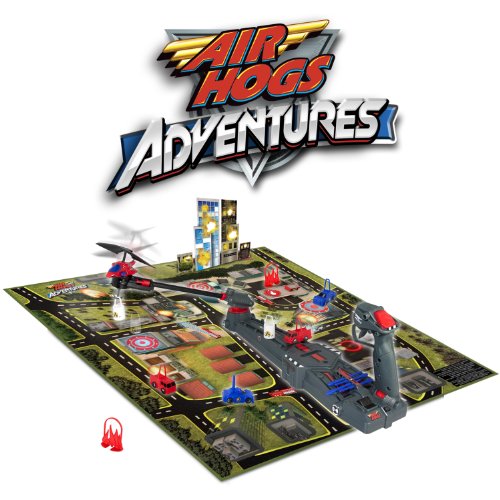 - Feature : Air Hogs Adventures is a tethered helicopter playset that brings your imagination to life! / With missile firing capabilities, remotely launch your cannons at targets / Pick up and transport accessories with the hook and roam the city while carrying vehicles! / Now you're in the pilot's seat and ready to save the day! / Includes: 1 Tethered Heli Control Centre, 30 inches X 30 inches Fabric Play Mat, 8 Plastic Pick-up Pieces, 3 Cityscape Buildings, 1 User Applied Decals, 1 Instruction Manual Requires 3 AA batteries not included