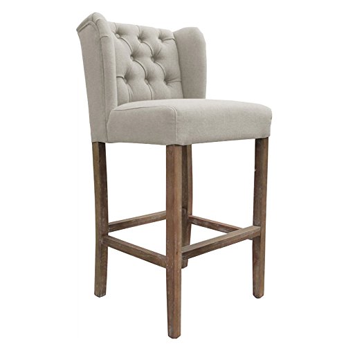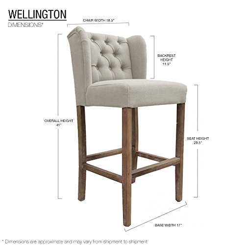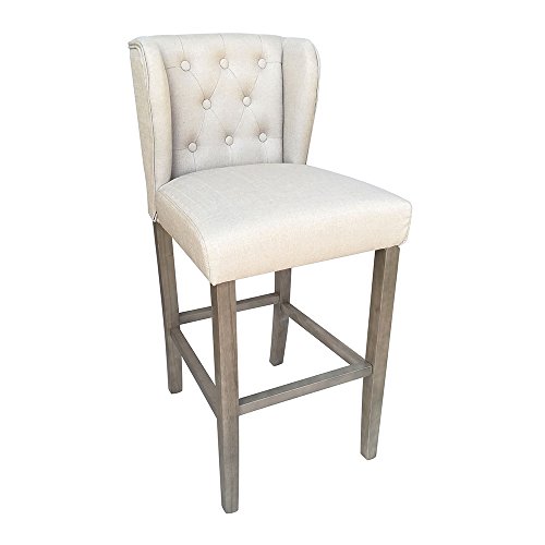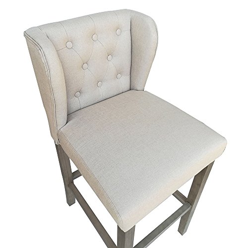 -. Title : Set of 2 Wellington Contemporary Wood/Linen Barstool - Beige Linen