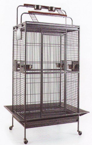 (Mcage)/Pet Supplies/Houses Habitats/DIRECT FROM USA/NEW Large Double Ladders Open Play Top Bird Wrought Iron Cage With Stand and Wheels *Black Hamm...