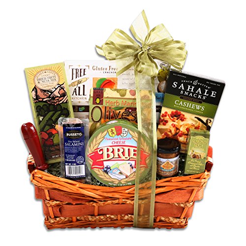 -. Feature : Gluten-Free Olive Oil Seat Salt Crackers (5oz); Sahale Cashews Pomagrante and Vanilla (2oz) / Olympos Olives (1.05oz); Jack Allen Fruit n Nut Mix (1.5oz); Almond Roca Candy (.41oz) / Jack Allen Brie Cheese (4oz); Busseto Salami Dry Mini (3oz / Napa Valley Whole Grain Mustard (1.75oz); Cheese Knife / Don't forget your gift message after you add to cart, check the "This is a gift" box