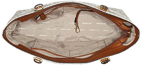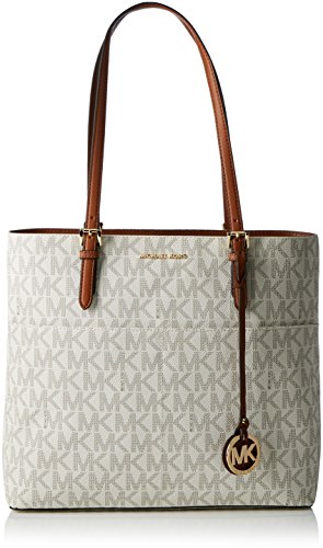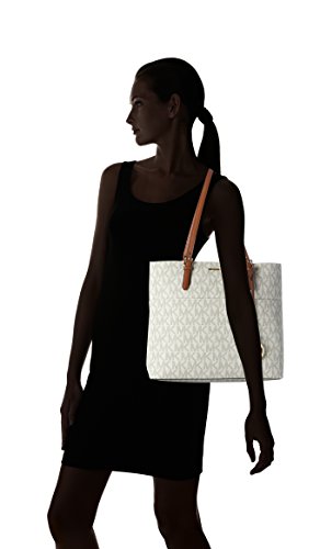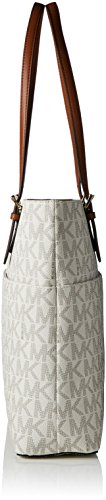 Studio : MICHAEL Michael Kors Publisher : MICHAEL Michael Kors Binding : Shoes Product Description Color/material: Vanilla; signature polyvinyl chloride construction. Exterior design details: four exterior slip pockets. Interior design details: interior features four utility pockets and one zip pocket. Measures 16in wide x 12in high x 5in deep. Top handle drops 10.5in. Top zip closure 0