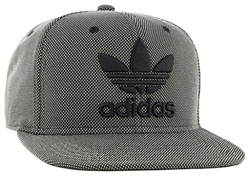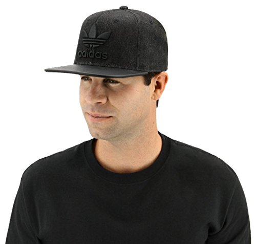 -. Feature : Structured 6 panel Flat brim with snapback closure / Chain stitch embroidered Trefoil logo / Die cut woven label at the back