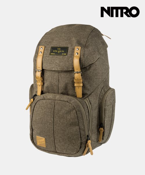 왼쪽 사이드포켓에는 NITRO 로고가 있으며 텀블러를 수납한 모습입니다.