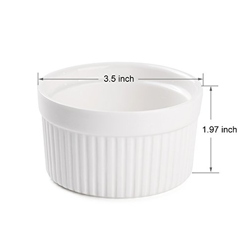 Set of 8 PCS 6 oz Round Porcelain Oven Safe Ramekin Dessert Souffle Baking Dish(3.5 INCHES) (WHITE)