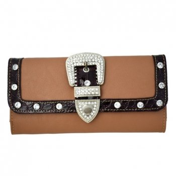 -. Binding : Apparel -. Brand : Way2Culture -. Department : womens -. Feature : Made of high quality faux leather. Beautiful rhinestones & studs on the front with buckle accent. / Trifold walet secured by magnetic snap. 2 transparent ID window & 12 credit card slots. 3 Wide flat compartments. / Approx. Size. L7.5'' x H4.5'' x W1'' -. ProductGroup : Apparel -. ProductTypeName : ACCESSORY -. Title : Western Rhinestone Bling Belt Buckle Trifold Wallet