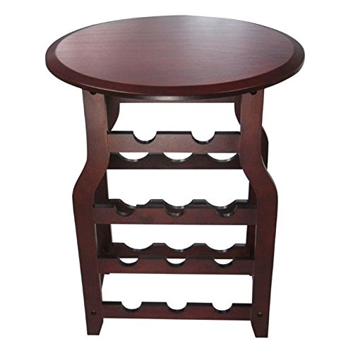 Apache wine rack. Mahogany finish. Simple yet elegant floor standing to keep selections of wine organized. Table platform for easy access for wine Tasting holds up to 11 wine bottles. Serves nicely in living room or any dining area.