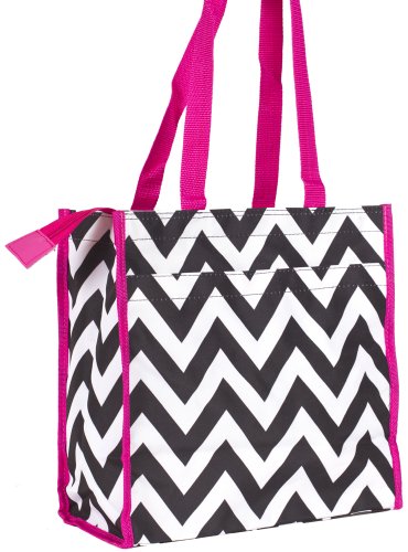 J Garden Black Pink Chevron Canvas Travel Tote Bag with Coin Purse 12-inch