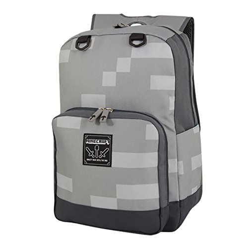-. Feature : lizenzierter Minecraft Rucksack / im Stone Block Design, Pickaxe auf der Rückseite / großes Hauptfach, kleine Reißverschlusstasche vorn, Seitenfächer außen / viel Stauraum, mit verstellbaren, gepolsterten Schultergurten / Maße 42 x 30 x 18 cm, Farbe grau