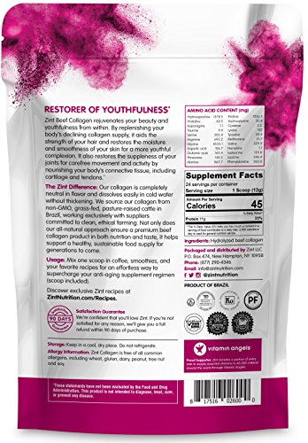 -. Title : Zint Beef Collagen Powder (10oz): Grass-Fed Hydrolyzed type 1 & 3 Protein Supplement