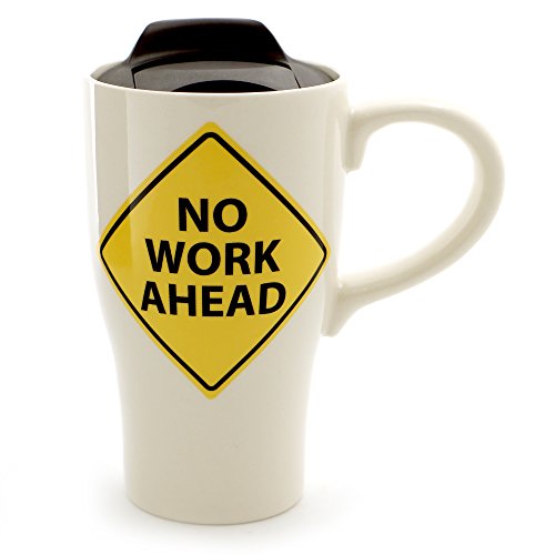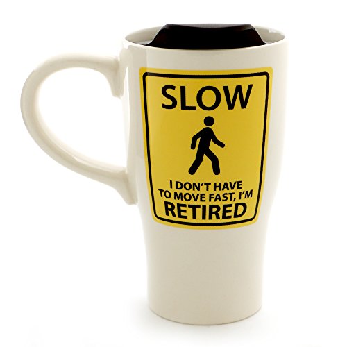 Enesco 6000540 Our Name Is Mud “No Work Ahead Retired” Stoneware Travel Coffee Mug, 14 oz, Yellow