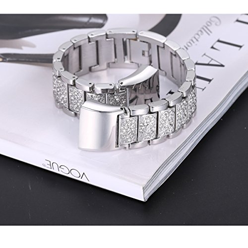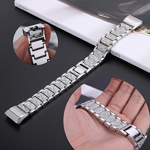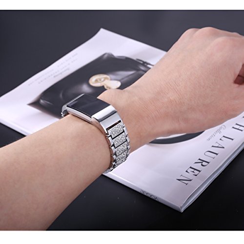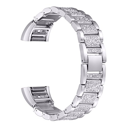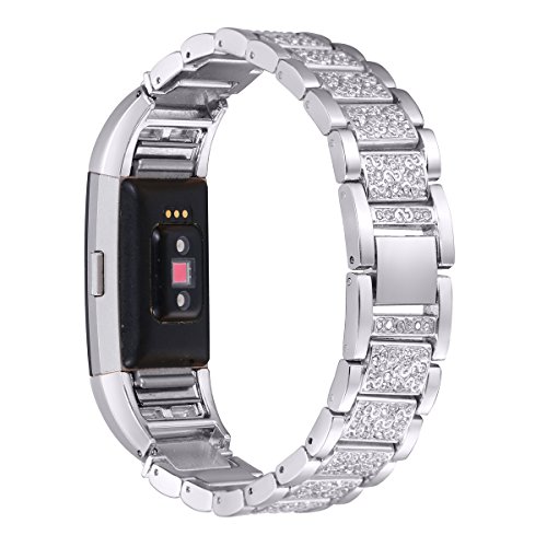 For Fitbit Charge 2, bayite Replacement Metal Bands with Rhinestone Adjustable Fitbit Charge 2 Bands Bracelet Silver Rose Gold