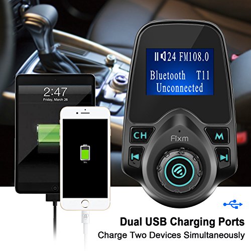 Stylish Design FM Transmitter: Large LED display screen not only can show current voltage of the storage battery of your car but also the name of songs or caller ID; automatically pairing once turn it on.
