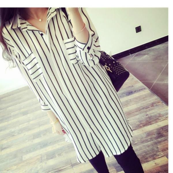 ストライプ ロング丈 スリムシャツ 白/XXXXL
