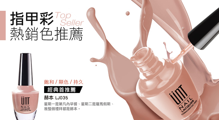 UNT指甲彩均採用法國大廠原料,發色飽滿、刷感均勻,讓美人也能一起艷光四射!
