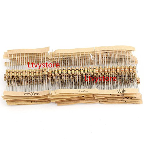 Ltvystore 1000pcs 100 Values 1R-10M 1/2W Metal Film Resistors Assortment Kit Assorted Set (Metal Film-1/2W-1000PS)