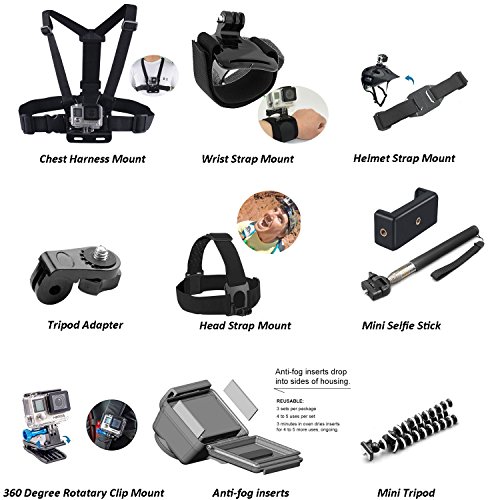 Durable metallic GoPro accessories kit – This Bundle includes metallic pieces such as the Selfie Stick and mini tripod, car suction cup, bike handle bar mount, metalic thumbscrews, and stainless steel tethering cable. We take pride in providing top quality products for your next adventure and be confident that your GoPro Hero Camera is in good hands.