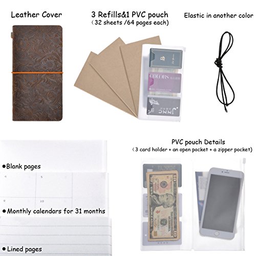 Include 1x leather cover, 3x refills, 1x zipper pouch,1x card holder( 3 business card slots)