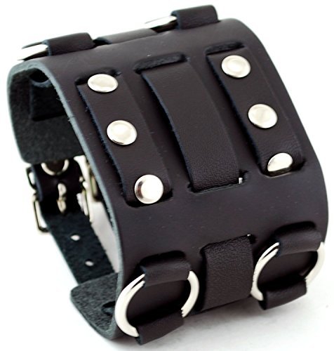 -. Title : RoseCo Wide Black Leather Tri Clasp Cuff Wrist Watch Band