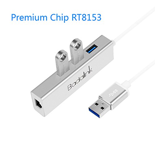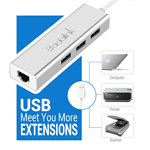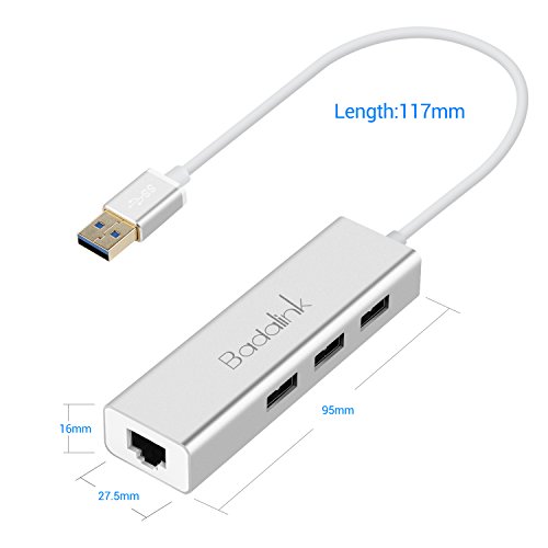 USB Hub - Badalink 3-Port USB 3.0 Hub with Ethernet Adapter LAN Connector, Portable Aluminum Hub for Laptop, Mac OS 10.6 and above, Linux, Win7/8/10(Silver)