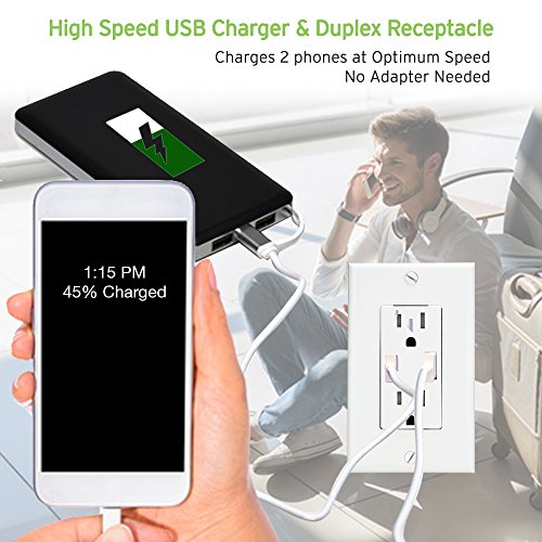 ✔ Ultra High Speed Power Charging to two USB devices at the same time without adapters. This record breaking charging speed USB outlet will allow you to spend less time charging your devices and more time using them.