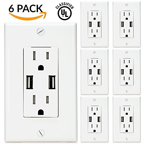 Sunco Lighting 6 PACK - UL Listed- High Speed USB Port Charger and Duplex Receptacle 15-Amp, 3.1A Charging Capability, Tamper Resistant Outlet- Wall-plate Included