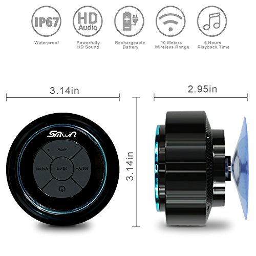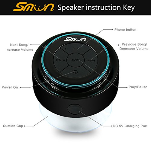 Smilin Portable Bluetooth Speaker Lautsprecher tragbarer Wasserdicht Wireless Funk Lautsprecher Wasserdicht mit Saugnapf Freisprecheinrichtung, integriertes Mikrofon fur Freisprech