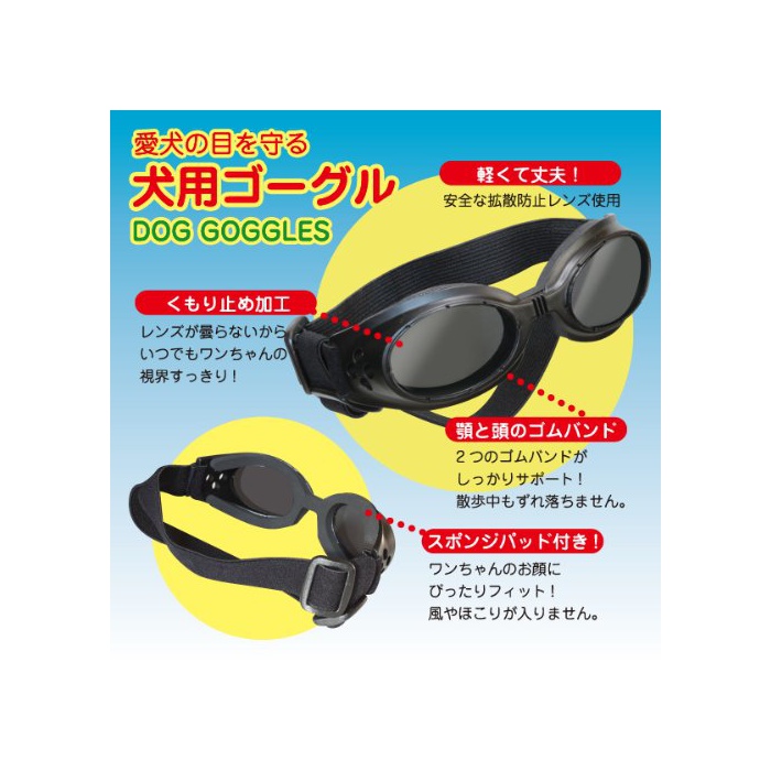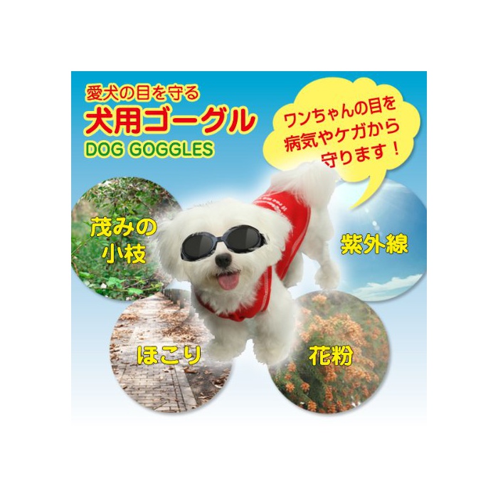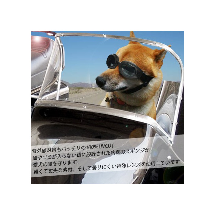 애견의 눈(째)를 자외선이나 쓰레기 등에서 지키는 견용고글입니다.