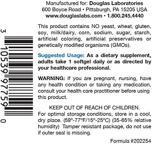 -. Feature : Lecithin, supplied by Douglas Laboratories, is conveniently offered in both softgel and granular forms. / DOES NOT CONTAIN: This product contains NO yeast, wheat, gluten, soy, milk/dairy, corn, sodium, sugar, starch, artificial coloring, artificial preservatives or genetically modified organisms (GMOs). / As a dietary supplement, adults take 1 softgel before lunch or as directed by physician. / * These statements have not been evaluated by the Food and Drug Administration. This product is not intended to diagnose, treat, cure, or prevent any disease.