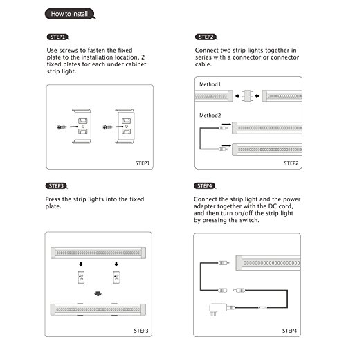 - The working voltage of this under counter lighting is DC 12 v 1.5a, which is touchable and safe for children, without any electric shock risk