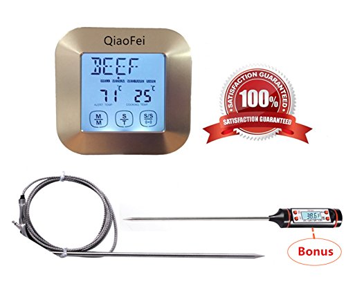 - Batteries are not included in package. - Please read the user manual carefully before first use. - Except the probe and wire, all the other components of the thermometer should be kept outside the oven or grill. - No hand touch on the probe when it is working. - Please DON't put the probe in water or baking with high heat for a long time,otherwise it will cause short circuit and deteriorate the probe. Add to Your Cart with great confidence! Enjoy your Baking with QiaoFei Digital Baking Thermometer!
