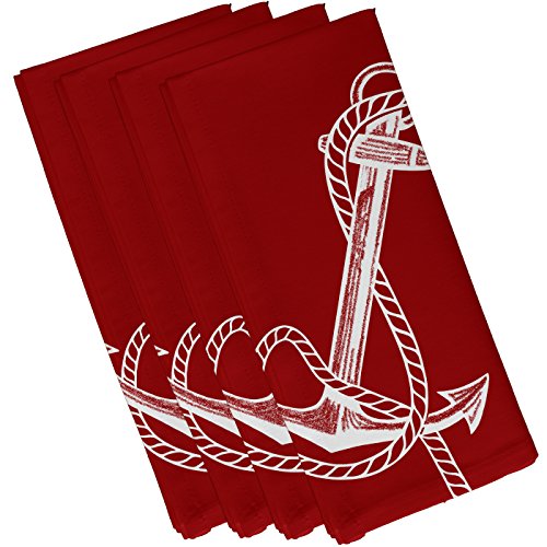 E by design Anchored, Geometric Print Napkin, 19 x 19", Red