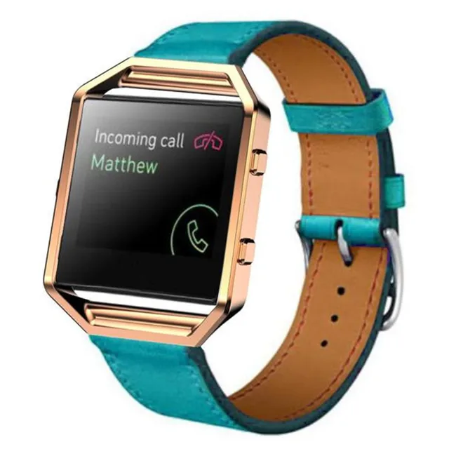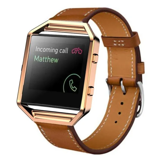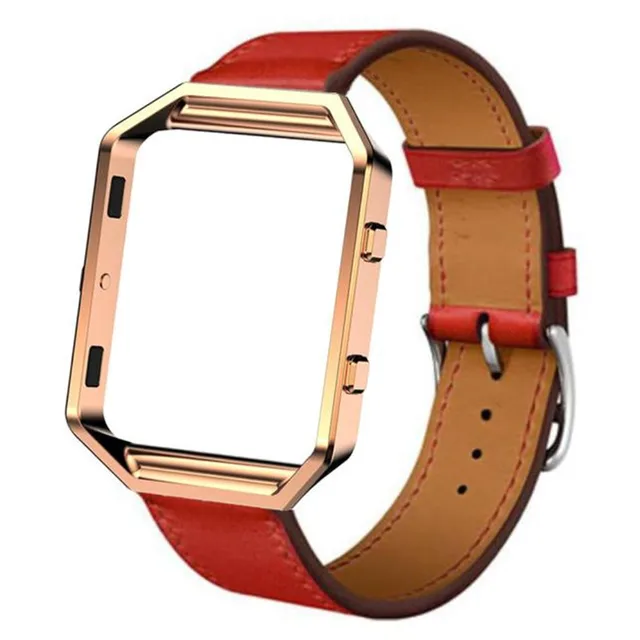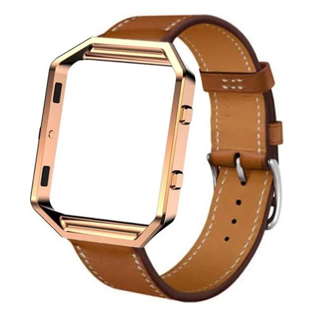 상품 내용 럭셔리 정품 가죽 손목 시계 밴드 손목 스트랩 + 금속 프레임 스트랩 팔찌 핏 비트 블레이즈 스마트 시계 시계 특징: