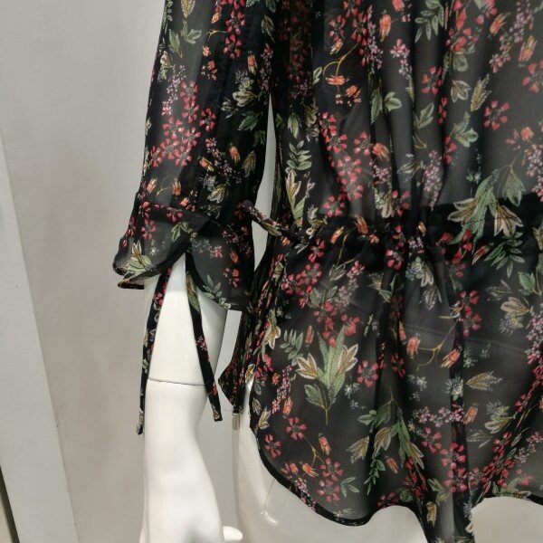 약간 하이넥으로 목부분 커버가 되며 허리부분 앞쪽은 스트링으로되있어 조절이 가능하며 소매부분 또한 너무 고급스럽다. 이너까지있어 비칠까 걱정 안해도 됨.