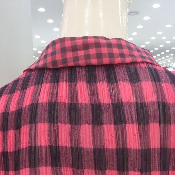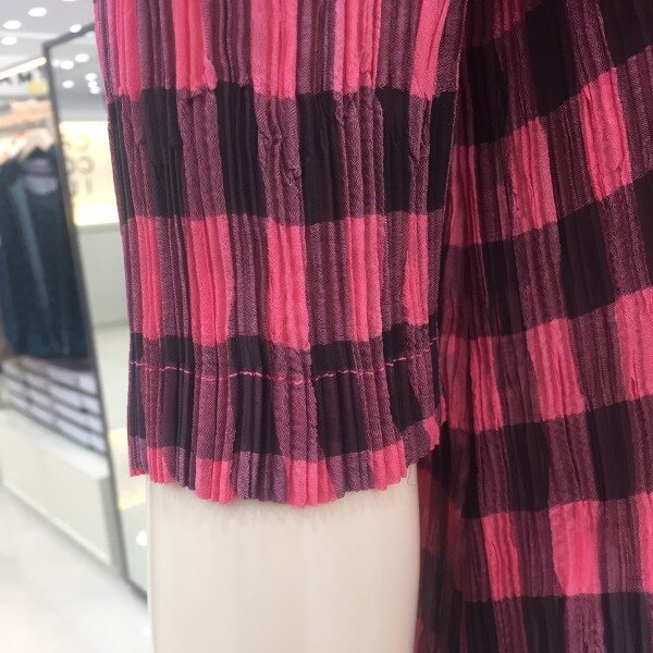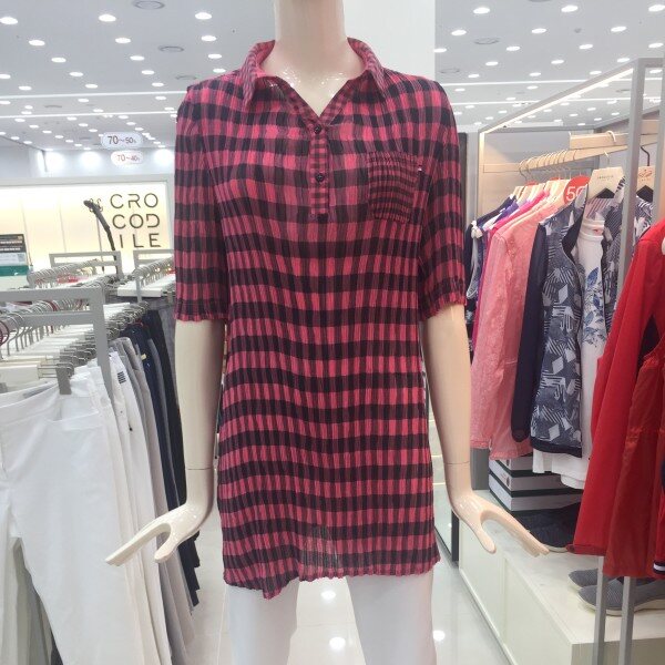 캐주얼한 체크 패턴에 주름 가공으로 편안한 착용감을 더해준 블라우스.