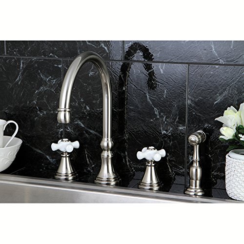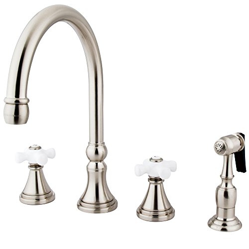 Kingston Brass KS2798PXBS Governor Deck Mount Kitchen Faucet with Brass Sprayer, 8-1/4-Inch, Satin Nickel