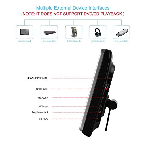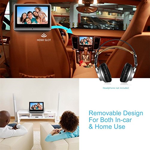 - ►Car Headrest Dvd Player Design with innovation: removable design for both in-car &home use and two mounting brackets provided to compatible with more car modes,2 way AV input (1*RCA+1*3.5mm) / 2 way AV output(1*RCA+1*3.5mm).