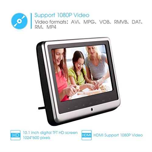 Car Headrest Dvd Player, LESHP 10.1 inch Ultra-thin HD 720P Digital TFT Screen Design Car Headrest DVD Player X10D 806D 606D Multimedia Player Headrest Monitor with USB port/SD/MMC/HDMI Port