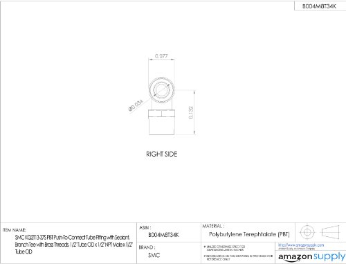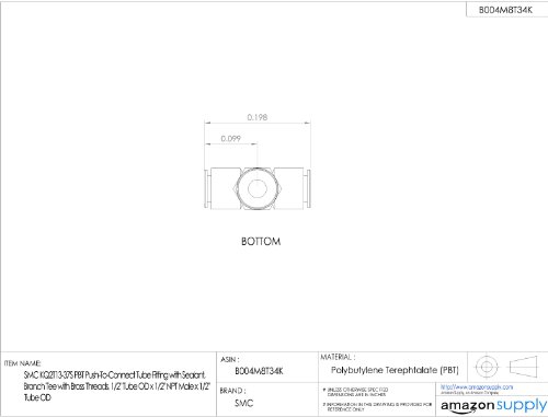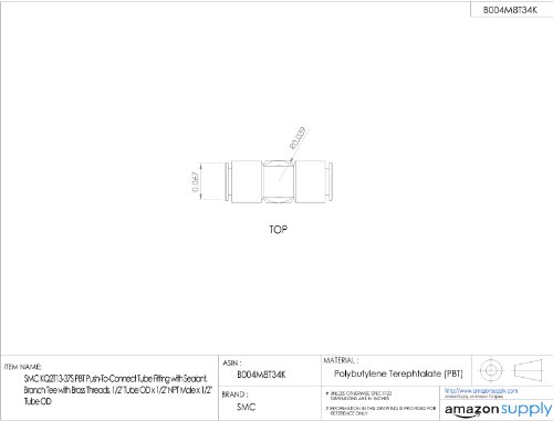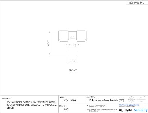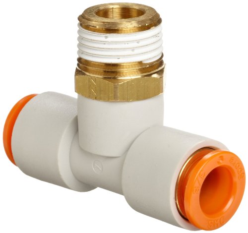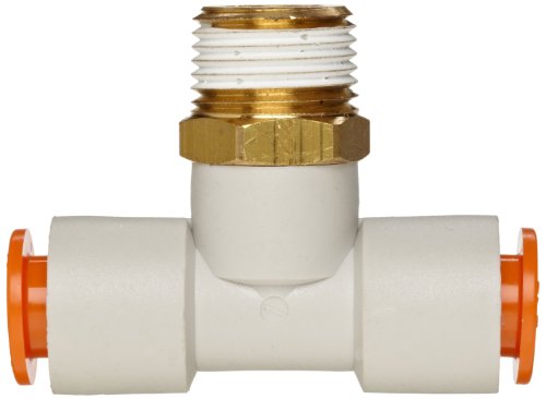 SMC KQ2T13-37AS PBT & Brass Push-to-Connect Tube Fitting with Sealant, Branch Tee, 1/2" Tube OD x 1/2" NPT Male