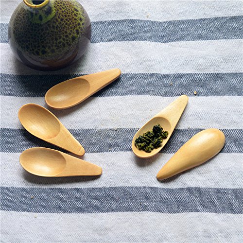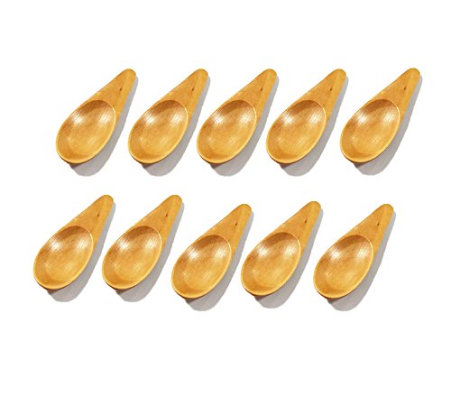 Antrader Mini Wooden Handmade Tableware Teaspoons Set for Condiment Coffee Tea Leaf Milk Powder Seasoning Measuring Set of 10 (2.8" x 1")