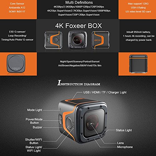 Foxeer FOXEER BOX 4K CMOS FOV 155 Grad Micro Bluetooth WiFi Kamera Mini FPV Sport Action Cam fur RC Drone Quadcopter