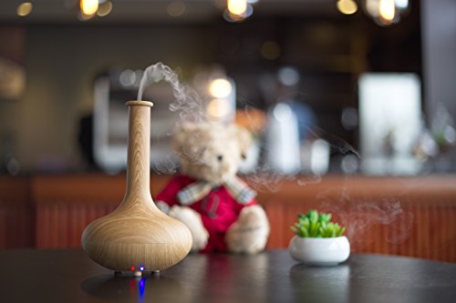 Binding : Kitchen Product Description Notes: Wood-grain design but made from PP PC ABS Please add water below the Max line Oil is not included in the package Do not press the button when the tank is empty.If there is no water but press the "MIST"button,the diffuser will be burned outDescription: It uses vibrating sound waves to create a soothing, scented mist. Plus, an optional LED light to enhance the mood with fixed or changing colors.Built-in LEDs further enhance the mood with 7 color-changing lights Works with ordinary tap water, plus 2 to 3 drops of essential oil.Ultrasonic vapor technology - no heat or flames Feature: ?Modes:"M" is continuous working/intermittent working; "L" is chaning lighting ?Natural design and materials ?Auto shut-off when water runs out for safety ?LED mood lighting with separate on/off control ?Ideal for large and small rooms, including bedrooms, offices, dorms and hotel rooms Specifications: Power: 12W Size:Ф130x190mm Advanced ultrasonic technology: 2.4MHZ Input power: AC100-240V Package include: 1*Diffuser 1*Adapter 1*Manual 0