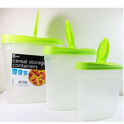 Cereal Nesting Container Set | 3 Storage Containers + 3 Snap Seal Lids | BPA Free Plastic with Easy Grip Handles - Green Colored Lids