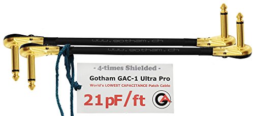 Custom made - 2 Stück - GOTHAM gac-1 Ultra Pro - 30,5 cm (30 cm), S-förmig, Premium, low-capacitance (21 PF/F) Gitarre Bass Instrument Patchkabel - Auswirkungen der Gotham gac-1 Ultra Pro verfügt über Gotham 's einzigartiges "Double reussen Abschirmung (2-Marke gewebt aus 100% Deckung Spirale Kupfer Schilde) und zwei separate Leitfähiger PVC-Schichten und Cellular PE Isolierung (fast alle Patch-Kabel auf dem Markt hat einen einzigen Schild und einem einzelnen leitfähigen PVC-Schicht), konfektioniert mit vergoldeten Steckern ¼ Zoll (6,4 mm) Low-Profile, rechts gewinkelt auf Pancake Typ TS (dieser S-förmige Kabel ist auch bekannt als "Z - Kabel).