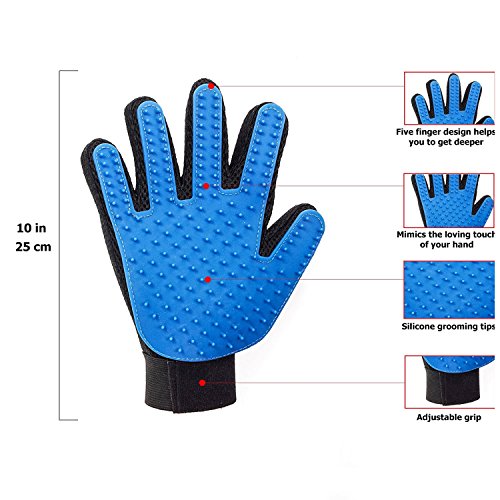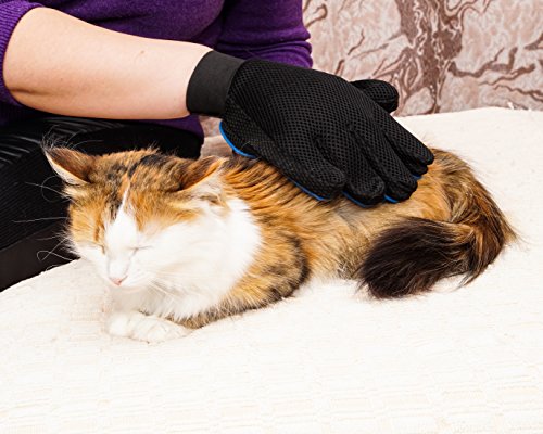 Tomby Pet Hair Remover Glove - Gentle Pet Grooming Glove Brush - Efficient Deshedding Mitt - Massage Tool with Enhanced Five Finger Design - Perfect for Dogs & Cats with Long & Short Fur