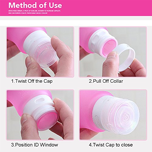 ★TSA APPROVED For Carry on Luggage:Three Large 1.3oz(37ml)/2oz(60ml)/3oz(89ml) Bottles-Perfect For different toiletry products such as your Soap,Shampoo,body lotion,and Other Liquid Toiletries;Free Clear Zipper Pouch Bag and with 1x20ml Face Cream Bottle.