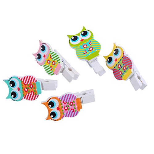 Souarts Mixed Random Owl Wood Wooden Clothespins for Game Favors Craft Pack of 30