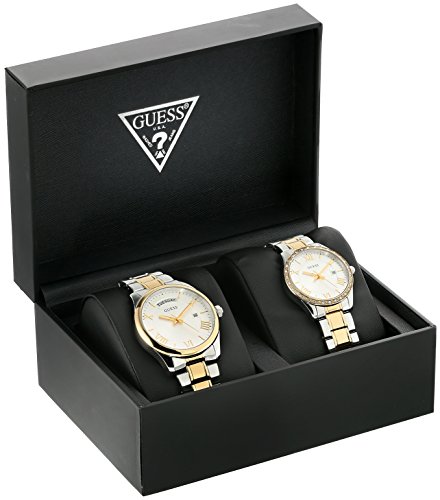 Both feature a date window. Hers features a crystal-accented bezel. The perfect date night combo